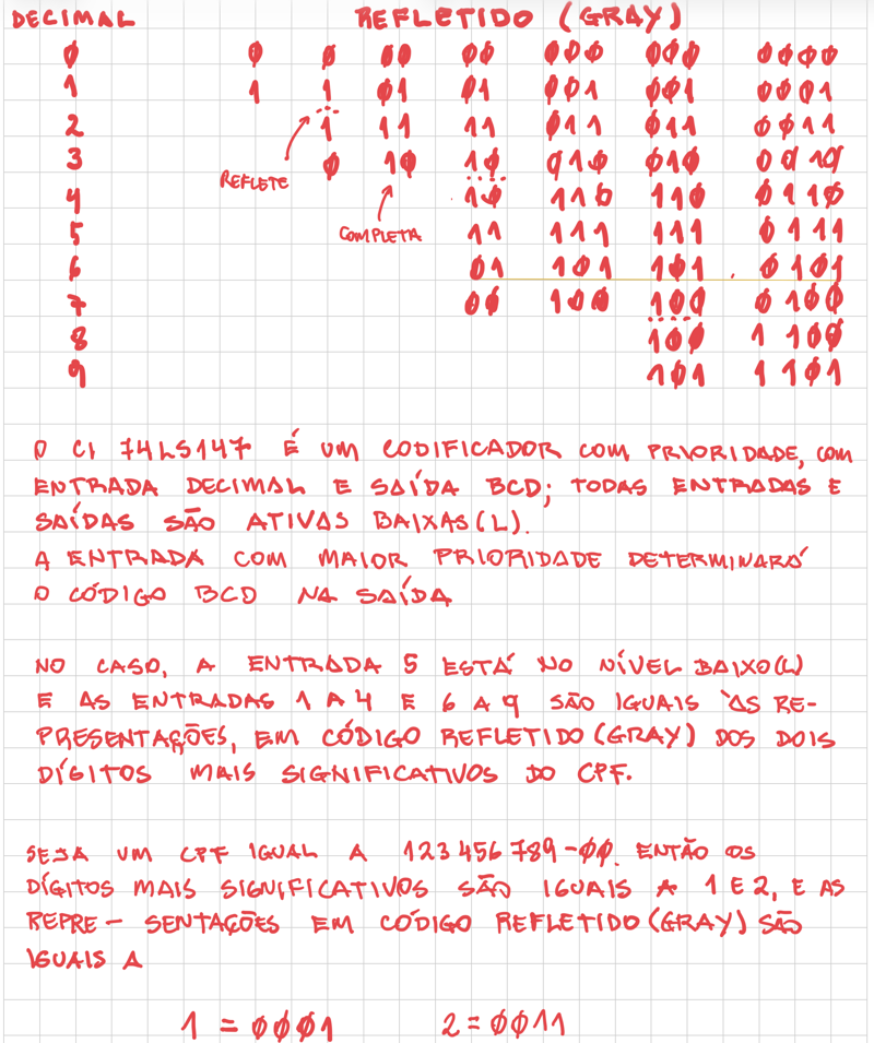 Representação em código REFLETIDO(Gray) dos dois números mais significativos do seu CPF:_0001_ e _0011_