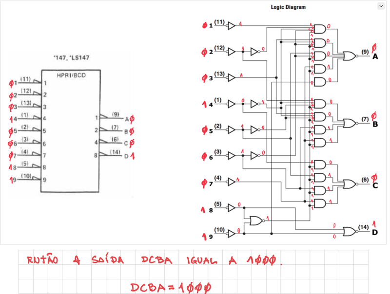 Níveis lógicos das entradas 1, 2, 3, 4, 5, 6, 7, 8, 9 = _0001000011_
