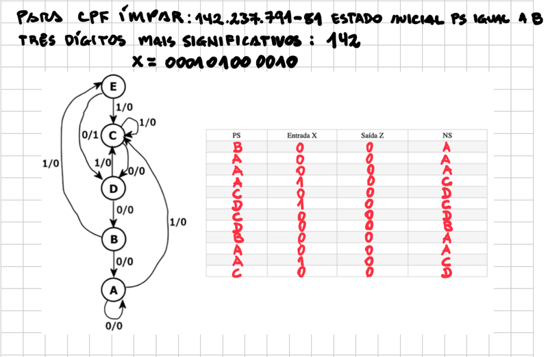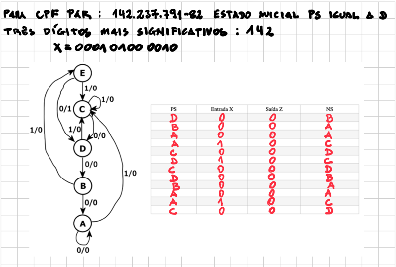 Três dígitos mais significativos do CPF = _142_Sequencia em binário de X = _000101000010_