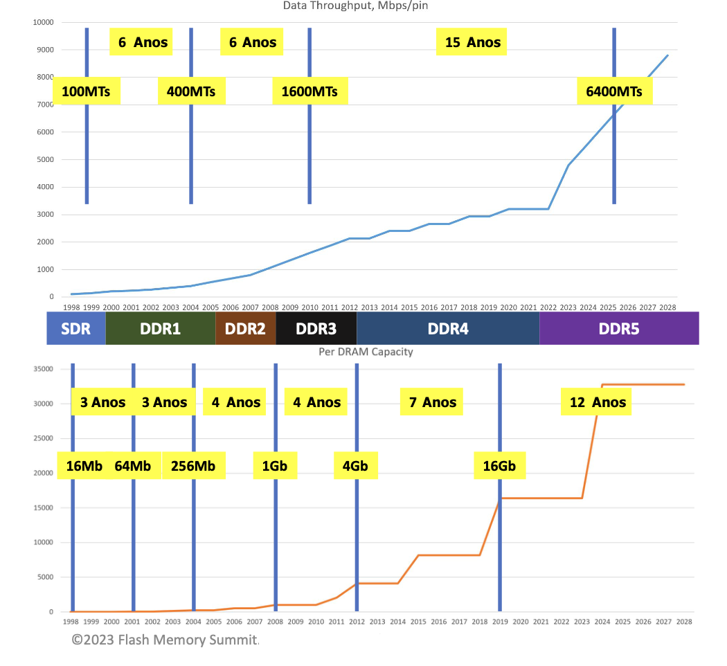 DDR5 foi planejada para 6400 Mbps, no máximo, agora estendido para 8800 Mbps